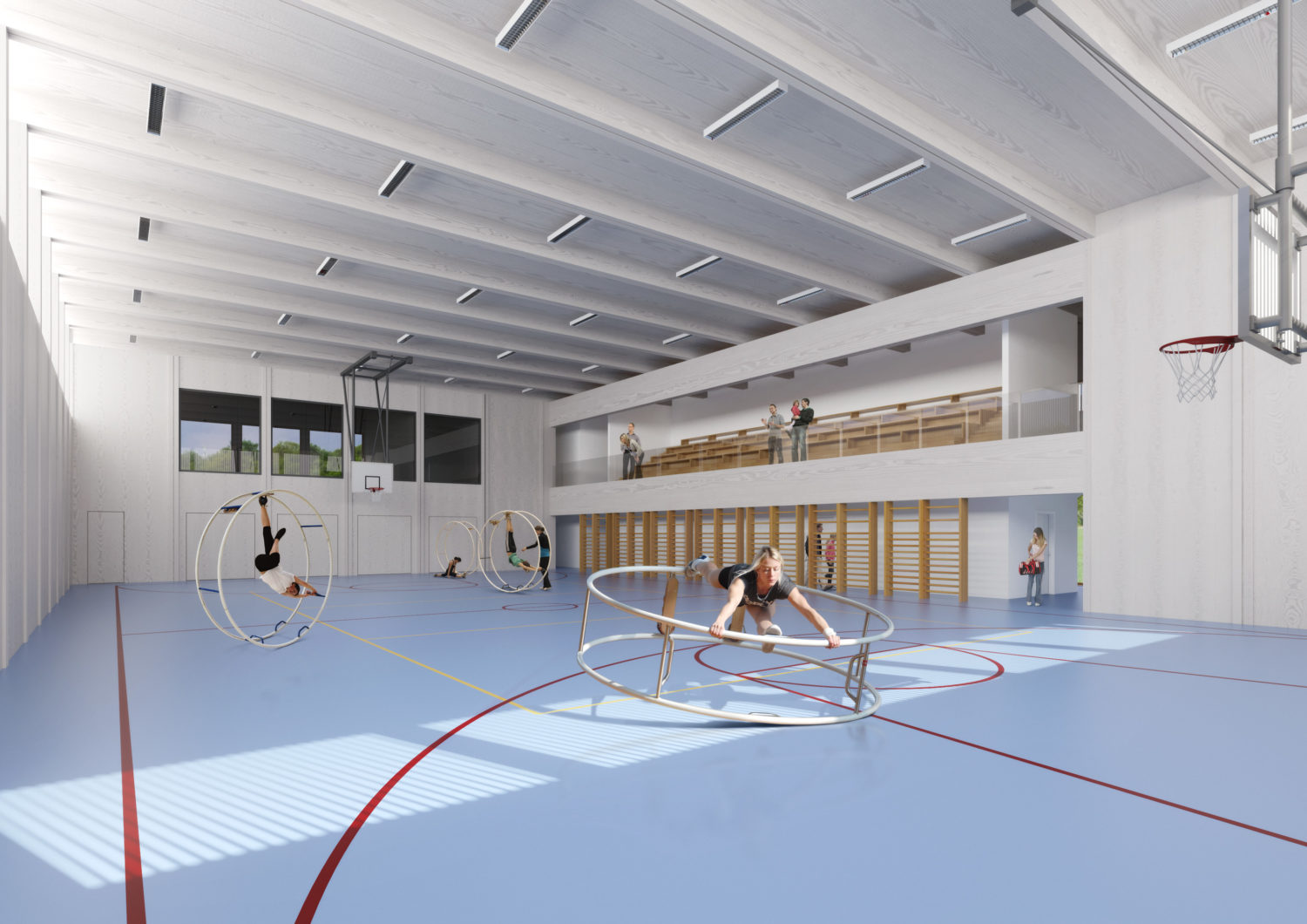 Rhönradhalle mit disponiblen Raum für einen integrierten Kindergarten
